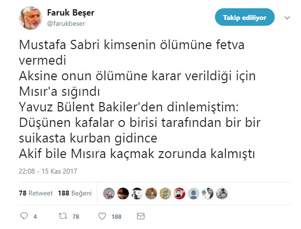 Öte yandan konuyu Habertürk gazetesindeki köşesinde mercek altına alan Murat Bardakçı da Mustafa Sabri Efendi’nin idam fetvaları iddiasıyla alakası olmadığını belirterek "Cehaletin de bir sınırı var" dedi.