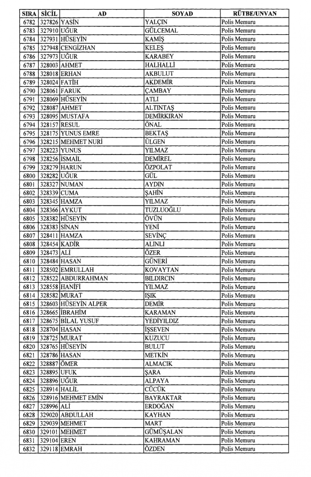 KHK İle Emniyet Genel Müdürlüğünden İhraç Edilenler