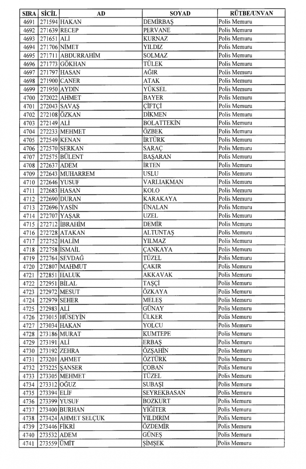 KHK İle Emniyet Genel Müdürlüğünden İhraç Edilenler