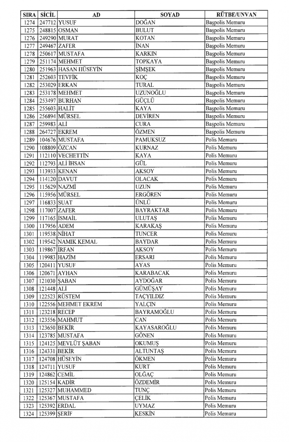 KHK İle Emniyet Genel Müdürlüğünden İhraç Edilenler