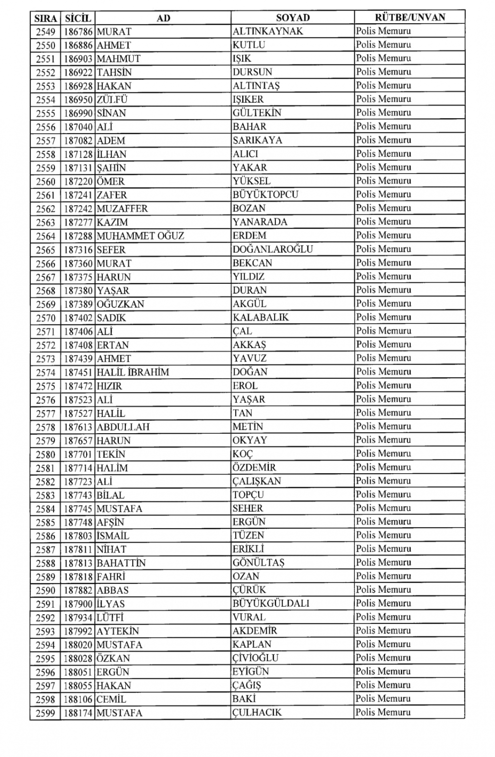 KHK İle Emniyet Genel Müdürlüğünden İhraç Edilenler