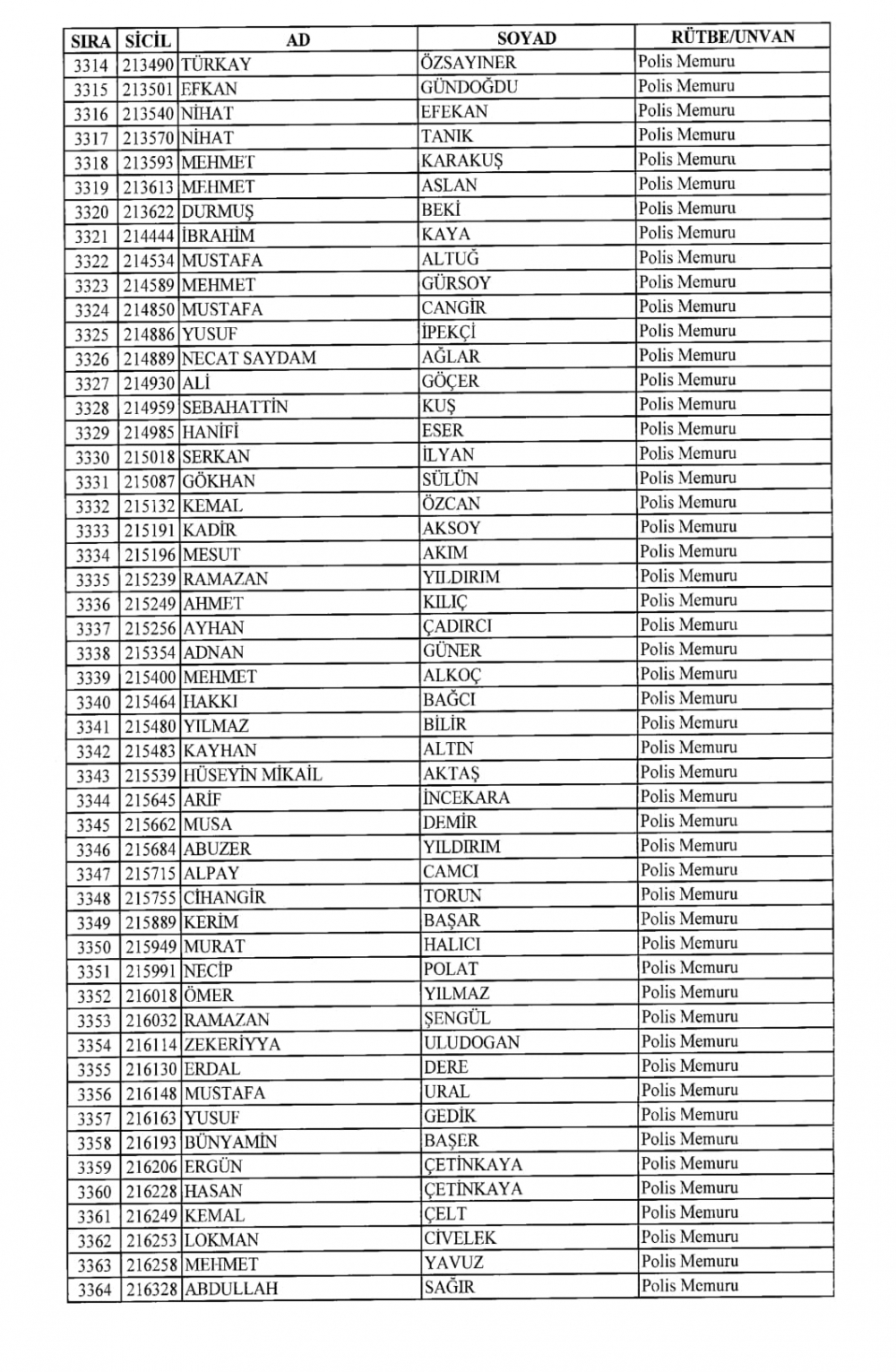 KHK İle Emniyet Genel Müdürlüğünden İhraç Edilenler