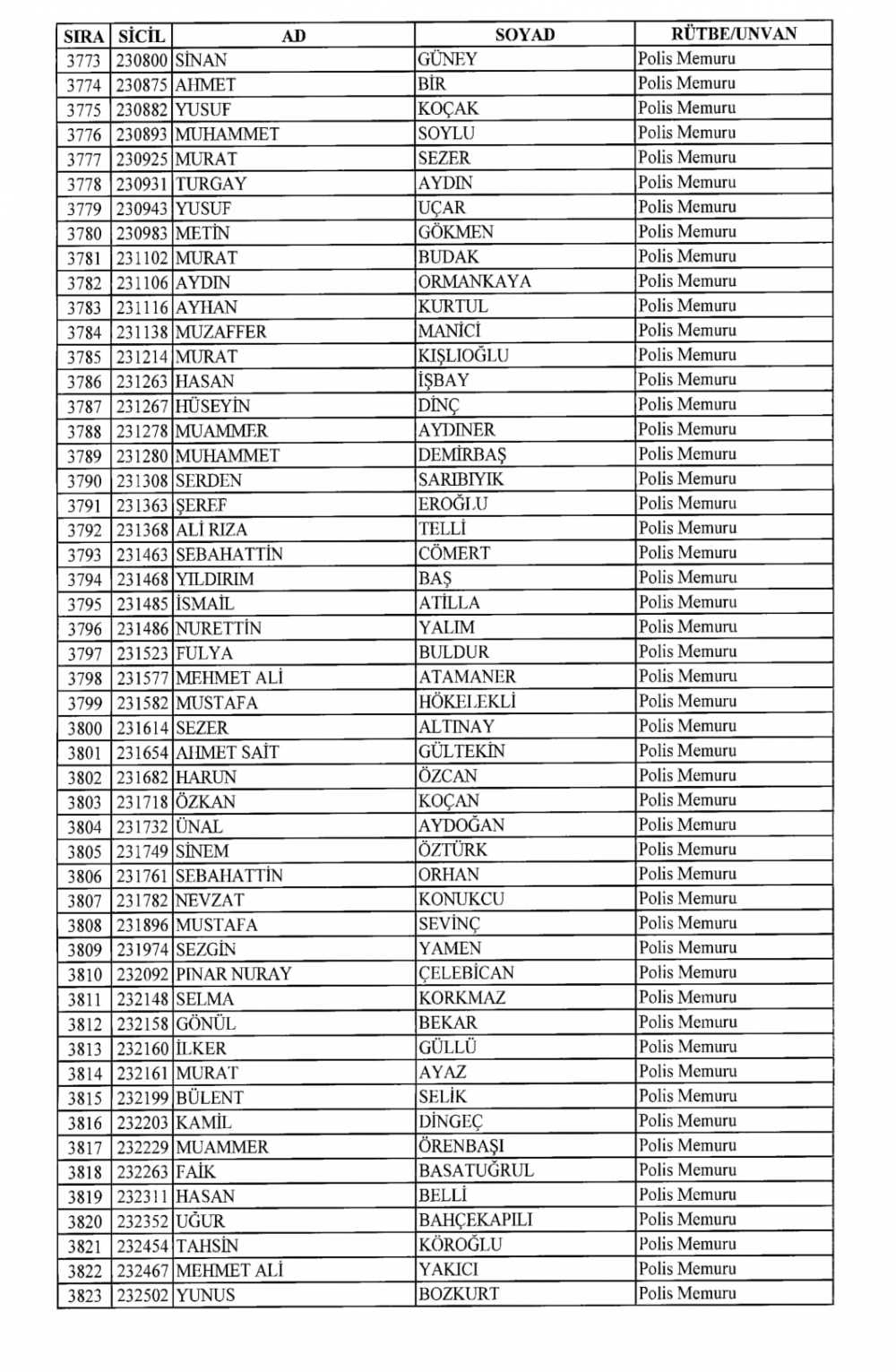 KHK İle Emniyet Genel Müdürlüğünden İhraç Edilenler