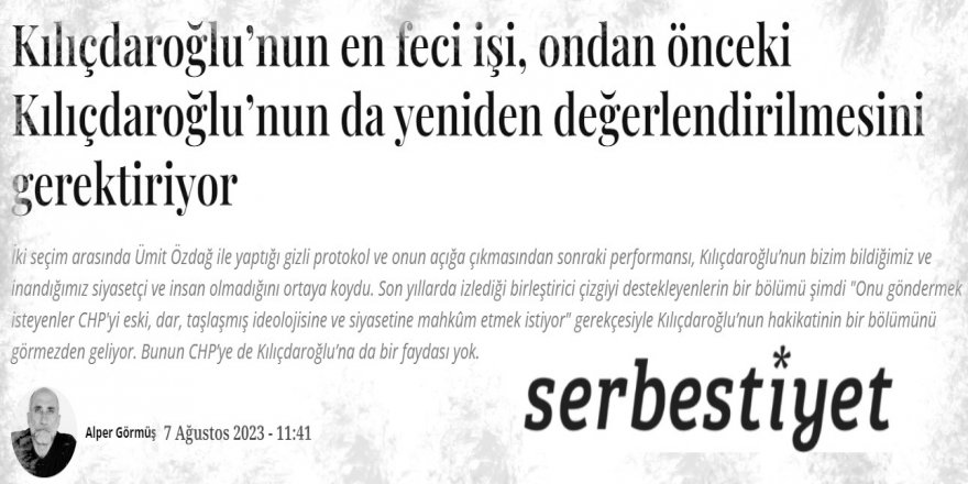 Kılıçdaroğlu’nun Ümit Özdağ adlı ırkçı-provokatörün dayatmalarına boyun eğmesine karşın Serbestiyet ‘protokol’ maddeleri arasında teselli arıyor!