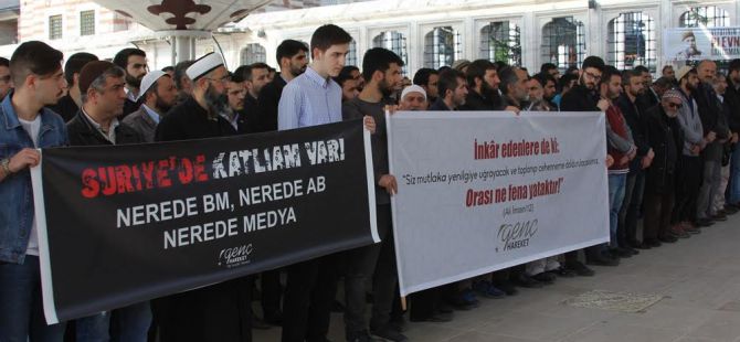 İdlip’te kimyasal saldırılara maruz kalarak öldürülen kardeşleri için Genç Hareket'in davetiyle gıyabi cenaze namazı kıldı. Namazı Doğu Guta’lı olup, kimyasal saldırılara canlı tanık olmuş İmam Yasir Topalca kıldırdı. ardından Serkan Demirel tarafından basın açıklaması okundu. basın açıklaması sonrasında Şahin İbrahim Güleryüz tarafından duygusal bir konuşma yapıldı ve dua edildi.