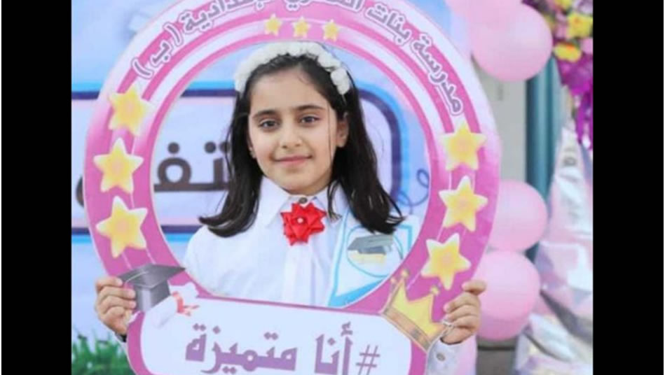 Rahaf Haziran 2023'te okulda, beşinci sınıftaki akademik başarısı için kutlanıyor. Bu onun savaştan önce tamamladığı son okul yılıydı