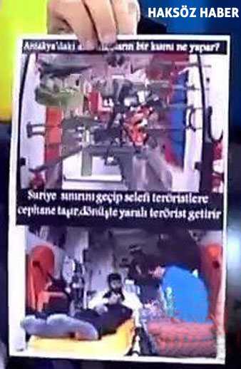 "Burada bir ambulans görüyorsunuz ve bu ambulans içinde havan topu, silahlar havada bağlanmış görüyorsunuz. Uzun menzilli tüfekler var. Tabanca iple bağlanarak havaya asılmış. Mayın bağlanmış ambulansın tavanına sanki avize gibi. Siz böyle silah taşıma yöntemini biliyor musunuz? Bu mantıklı mı? Şurada bir füze var. Ambulansın tavanına asılmış füze şöyle sallana sallana füzeleri mi taşıyorlar. Bir basın konseyi başkanının böyle bir asparagas medyaya dayanarak beyanında bulunması sorumsuzluk örneğidir. Ya fotomantajdır. Yada kurgulanmıştır."