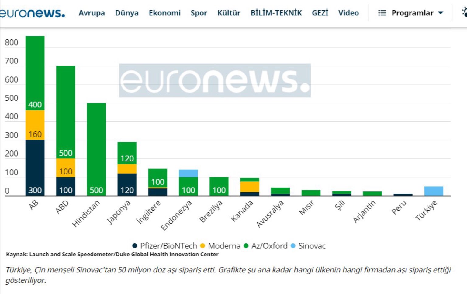 Şuana kadar belirli aşamaları geçmiş aşılar şunlardan oluşuyor: Az/Oxford, Moderna, Pfizer/BioNTech, Sinovac. Faz III çalışmaları Türkiye’de de gerçekleştirildi. Türkiye, Çin’de geliştirilen Sinovac aşısının üretim çalışmalarında da yer aldı ve 50 milyon doz Sinovac aşısı sipariş etti. Buradaki en temel etken ise Pfizer aşısının üretim kapasitesi kadar dozun zaten büyük ülkeler tarafından sipariş edilmesinde yatıyor. Yakın dönemde Pfizer aşısının Türkiye’ye yetişmesi güç gözüküyor kısaca. Ayrıca Sinovac aşısı daha uygun fiyatlara elde edilebiliyor. Ancak aşıların fiyatlarından ziyade ülkeler arasında imzalanan antlaşmalardaki fiyatlar belirleyici oluyor.