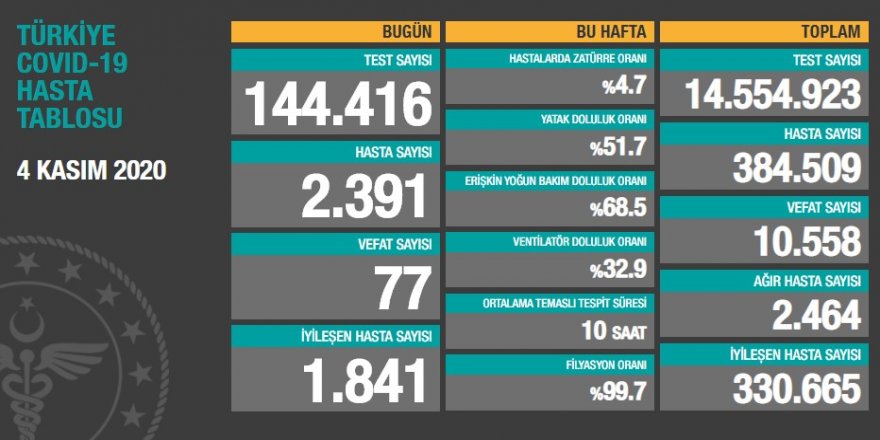 Türkiye’de son 24 saatte 77 can kaybı yaşandı, 2391 yeni korona vakası tespit edildi