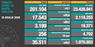 Sağlık Bakanı Fahrettin Koca, koronavirüs nedeniyle son 24 saatte 256 kişinin hayatını kaybettiğini, yeni vaka sayısının da 17 bin 543 olduğunu duyurdu.