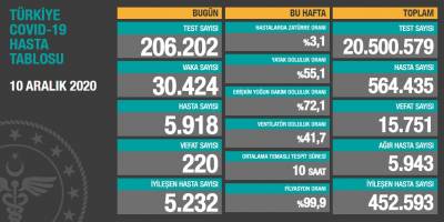 Türkiye'de son 24 saatte 196 bin 902 Kovid-19 testi yapıldı, 32 bin 137 kişinin testi pozitif çıktı, 203 kişi hayatını kaybetti. Ağır hasta sayısı 5 bin 836 oldu, iyileşenlerin sayısı ise 436 bin 270'e yükseldi.