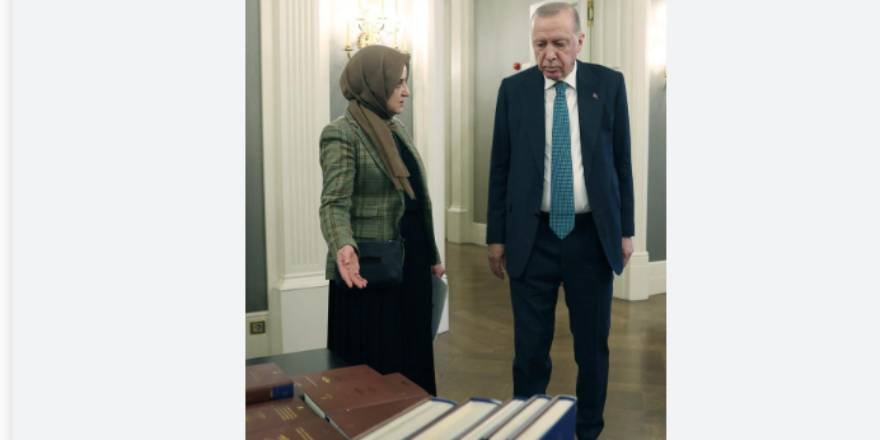 Koleksiyonun basımında katkı yapan Cumhurbaşkanı Başdanışmanı Gülşen Orhan, 15 ciltlik koleksiyonu Erdoğan’a takdim etti: