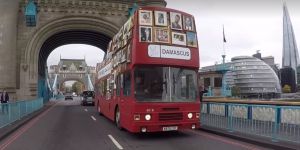 Suriyeli ailelerin organize ettikleri otobüs, Esed rejimi tarafından kaybedilen yakınlarının durumuna dikkat çekmek için Londra sokaklarında.