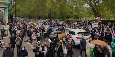 İsrail ile devam eden çatışmalarda Filistin halkını desteklemek için Londra'nın merkezindeki Speaker's Corner'da yüz binlerce insan bir araya gelerek İsrail elçiliğine doğru yürüyüşe geçti.