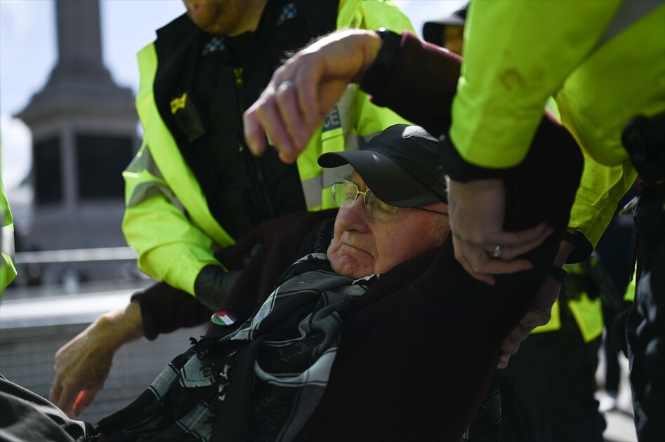 Daha önce Palestine Action’a destek eylemlerinin yasa dışı olduğunu ve destek verenlerin gözaltına alınacağını açıklayan Londra Metropolitan Polisi, çoğunluğu yaşlı İngilizlerden oluşan eylemcilere müdahale etti.