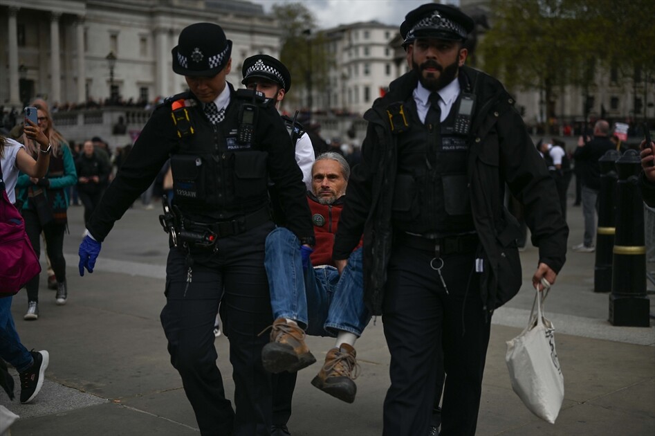Londra Polisi, ABD merkezli X şirketinin sosyal medya platformundan yerel saatle 15.12'de (TSİ 17.12) yaptığı açıklamada, eylemin başlamasından sonra geçen 1 saat 50 dakikalık süreçte 92 kişinin gözaltına alındığını duyurdu.