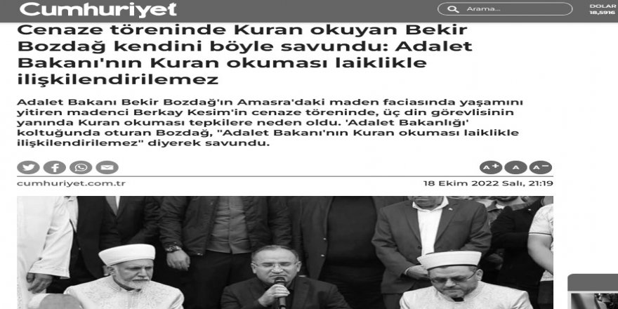 Cumhuriyet ‘Kuran okuma suçu’ndan ötürü Bozdağ’ın ifadesini almış!