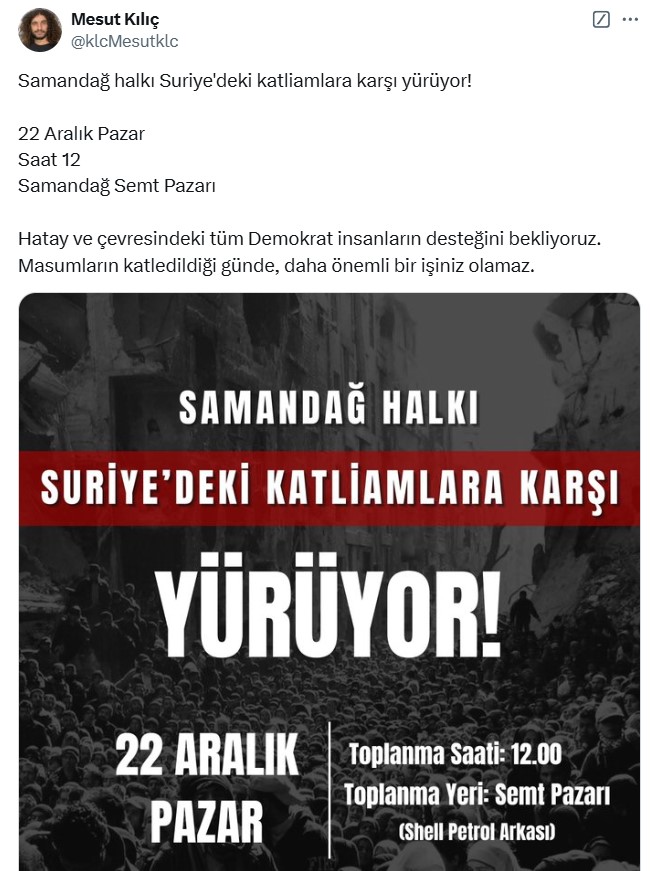 Yanlış anlaşılmasın! Aşağıda duyurusu yapılan eylemde bu insanlar, bir milyona yakın insanı öldüren bir rejimi protesto etmek için yürümüyorlar.
