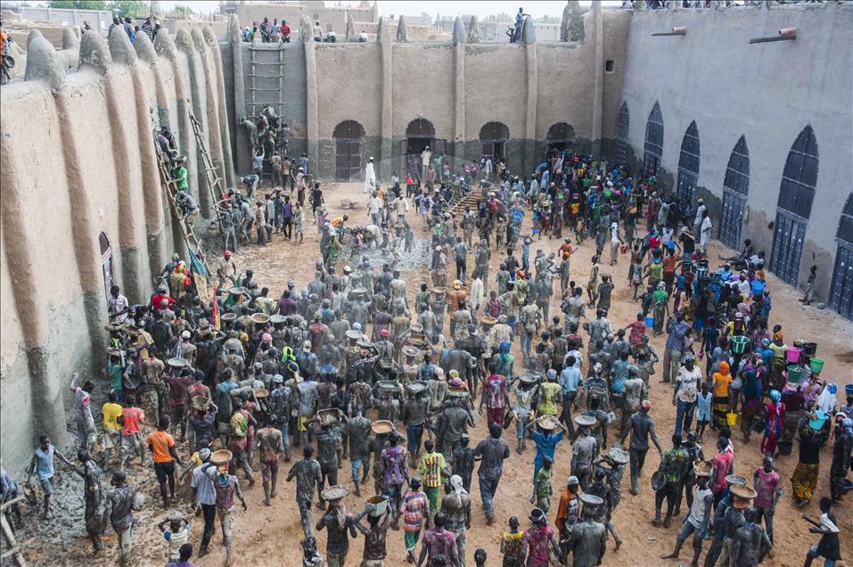 Mali'de Toprak Camiyi Çamurla Tamir Ediyorlar