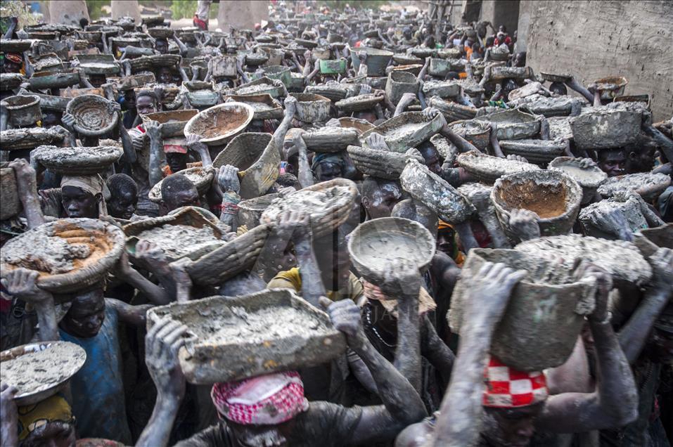 Mali'de Toprak Camiyi Çamurla Tamir Ediyorlar