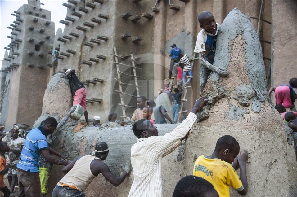 Mali'de Toprak Camiyi Çamurla Tamir Ediyorlar