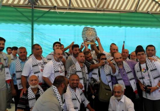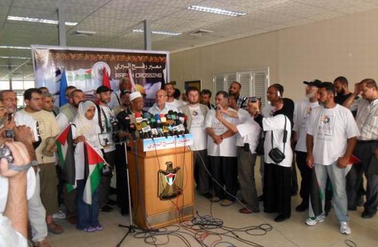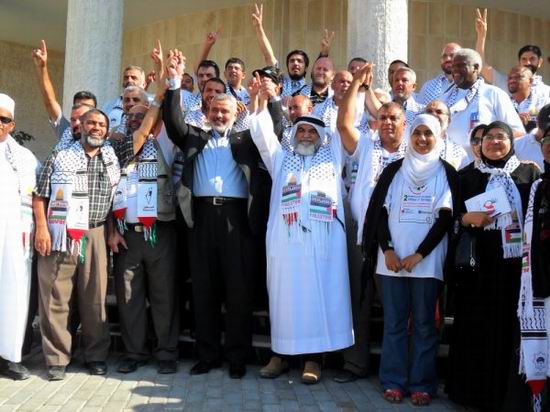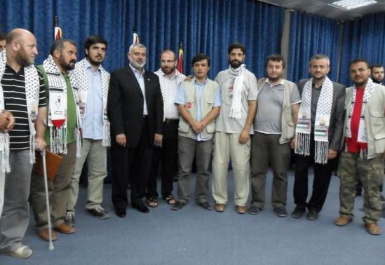 Mavi Marmara yardım gemisinde Siyonistlerin saldırıları sonucunda yaralanan yolcular arasından kura ile belirlenen 9 gönüllü aktivistin içerisinde bulunduğu 45 kişilik ekip beraberlerinde getirdikleri yardımlarla beraber Gazze'ye girdiler. Gazze'de büyük bir coşku ile karşılanan heyette özellikle yardım gemisinin yaralılarına büyük ilgi gösterildi.