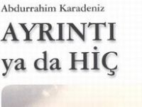 Asım Öz, bu haftaki kitap kritiğini Abdurrahim Karadeniz'in "Ayrıntı ya da Hiç" isimli kitabıyla sürdürüyor: