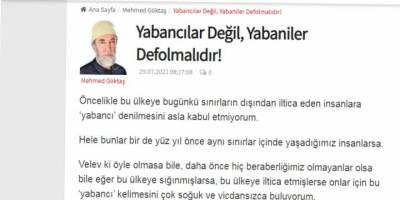 Mehmet Göktaş, Suriyeli ve Afganistanlı muhacirlere yönelik ırkçı söylemleri değerlendirdiği yazısında, “Eğer bir an önce defolup gitmesi gerekenler varsa bu milletin başını önüne eğdiren, bu millet için yüz karası olan bu Yabanilerdir.” diyor.