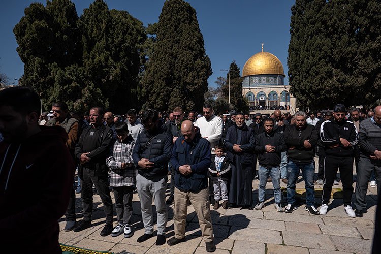 İşgal altındaki Kudüs'te bulunan Mescid-i Aksa'da 60 bin kişi, ramazan öncesi son cuma namazını eda etti.