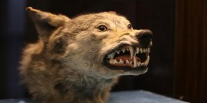 MHP Genel Başkanı Devlet Bahçeli'ye doğum günü dolayısıyla hediye edilen doldurulmuş kurt kafası, parti genel merkezindeki sergi salonunda yer alıyor.