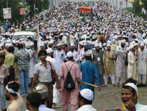 Başkent Dakka'da milyonlarca Müslüman, İslam'a hakaret eden bloglara karşı yasa çıkarılması için bir araya geldi. (VİDEO)