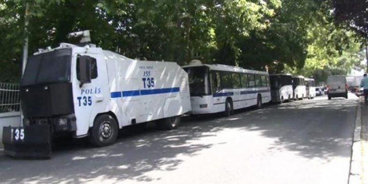Açıklamanın ardından gözaltına alınanları taşıyan polis aracı çıkış yaptı. Bu sırada Yıldız Sarayı önünde bulunan küçük bir grup slogan attı.