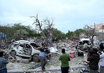 Mogadişu'da bir kafenin otoparkında bomba yüklü araçla düzenlenen saldırıda, aralarında kadın ve çocukların da bulunduğu en az 20 kişi hayatını kaybetti.