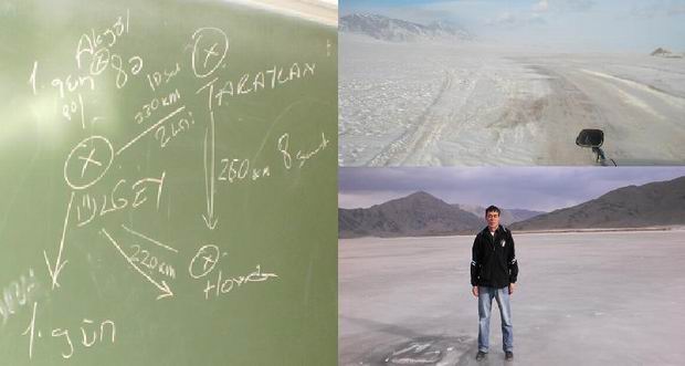 Yol boyunca 50 şeridin üzerinde genişlikte otoban görülmeye değerdi. Uçsuz bucaksız bozkır, insanda bir özgürlük hissi uyandırıyor. Rakım 2.000 metrenin üzerine çıktığında, kar ve tipi yüzünden oldukça yavaşladık. Karşımıza çıkan dere ve nehirlerin tamamı donmuştu ve bu bizim için iyi bir şeydi, zira köprü denilen bir şey olmadığından, nehirleri buz üzerinden geçebiliyorduk. Aksi halde yol, her bir nehir için 2-3 saat daha uzayacaktı. Dere ve nehirlerde buz kırılırsa aracımız kalacak ve bizi çekip çıkarması için günde birkaç kez geçen kömür kamyonlarını beklemek zorunda kalacağız. Allah’tan buzların hepsi dayandı ve 8 saat süren kısa bir yolculuk sonucu Tayralan’a vardık.