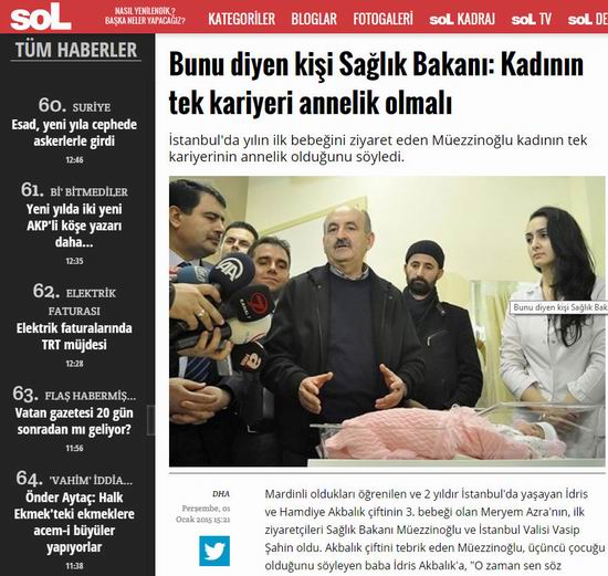 Anneliğin kadının hayatında merkezi bir yere sahip olması gerektiği, diğer kariyerlerin annelikten sonra gelmesi gerektiğini söyleyen Sağlık Bakanı Mehmet Müezzinoğlu'nun ifadeleri sol-sosyalist ve liberal basında bilinçli olarak çarpıtılmakta. Cumhuriyet, SoL, Birgün, Radikal, Taraf gibi gazetelere bakıldığında Bakan'ın "kadın için anneliği tek ve tartışılmaz kariyer" olarak sunduğu izlenimine kapılmak mümkün. Oysa Müezzinoğlu'nun söz konusu açıklaması dinlendiğinde anneliğin kadının asli vazifesi olduğu, diğer mesleklerin/kariyerlerin bundan sonra gelmesi gerektiğinin ifade edildiği rahatça anlaşılıyor.