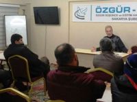 Sakarya Özgür-Der'in “Peygamberin Örnekliği” seminerlerinde bu hafta Murat Aydoğdu, “Bedir ve Uhud Zafer mi Yenilgi mi” konusunu anlattı.