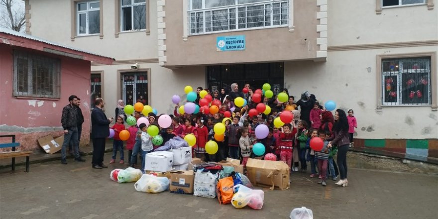 Muş Alparslan Üniversitesinde faaliyet gösteren Hayırda Buluşanlar Öğrenci Topluluğu köy okullarında okuyan öğrencilere yardımlarına devam ediyor.