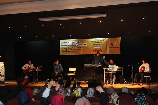 Programda sahne alan Grup Yürüyüş, Müslüman coğrafyada yaşananları ezgilerle dile getirdi.