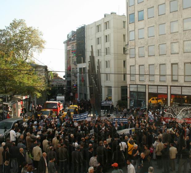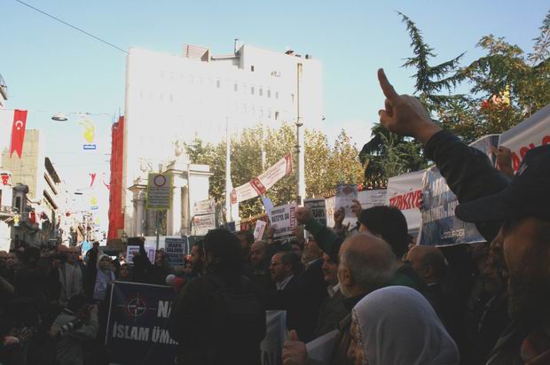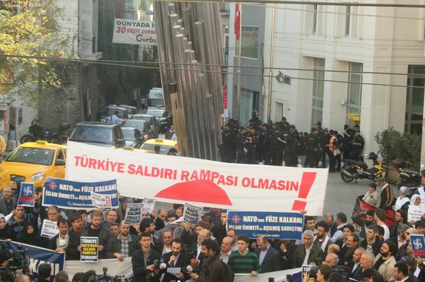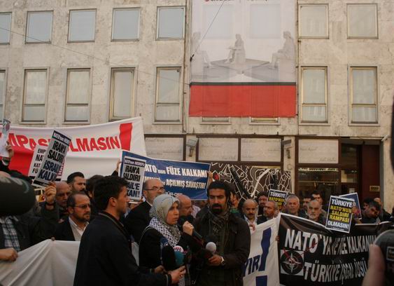 İslami kuruluşlar Galatasaray Lisesi önünde bir araya gelerek NATO Füze Kalkanı’nın Türkiye'ye kurulmaması çağrısı içeren bir protesto eylemi düzenlediler.