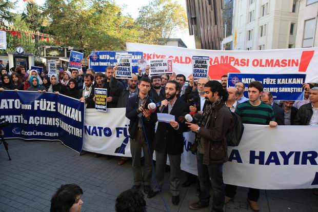 Eylemde 19-20 Kasım tarihleri arasında Lizbon'da yapılacak NATO zirvesinde netleşmesi beklenen proje karşısında Türkiye hükümeti ve duyarlı çevrelere çağrı yapılarak projenin reddedilmesini talep ettiler. Özgür-Der, İHH, Mazlumder, Anadolu Platformu, Akabe, Araştırma Kültür Vakfı ve Hikmet Vakfı'nın düzenlediği eylemde ilk olarak söz alan Mazlumder Genel Başkanı Ahmet Faruk Ünsal; Türkiye'nin, Batı'nın güvenliğine korucu yapılmak istendiğini açıkladı.
