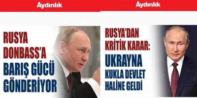 Türkiye'deki Rus yanlısı işgalci basının lideri Aydınlık gazetesi işgal edilen Ukrayna topraklarına "barış gücü" gönderildiğini iddia ediyor!