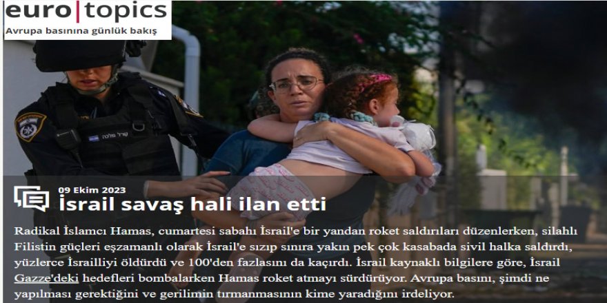 Radikal İslamcı Hamas’ın cumartesi günkü acımasız saldırısının ardından İsrail savaş hali ilan etti. Hamas savaşçılarının Gazze’ye götürdüğü İsrailli rehinelerin serbest bırakılmasına yönelik müzakereler sürüyor. İsrail tarafında ölenlerin sayısı 1.200’ü aşmışken, İsrail’den gelen bilgilere göre en az 1.000 silahlı Filistinli öldürüldü. Yorumcular savaşın gidişatını irdeliyor.