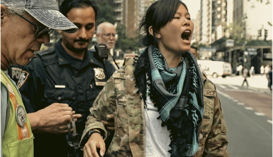 * Joy Metzler, ABD'nin Gazze'deki Filistinlilere yönelik soykırıma finansman ve ortaklık sağladığını gerekçe göstererek Hava Kuvvetleri'nden yeni ayrılmış bir gazi. Aktif görevdeyken konuşmaya başladı, Barış İçin Gaziler'e üye oldu ve VFP'nin New York'taki 40 günlük orucuna katılarak savunuculuğunu sürdürdü.