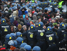 Birleşmiş Milletler İklim Zirvesi'nin yapıldığı kongre merkezine girmeye çalışan yüzlerce göstericiye Danimarka polisi müdahale etti. Polis kalabalığı dağıtmak için cop ve göz yaşartıcı gaz kullandı.