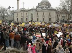 28 Şubat darbesinin yıldönümünde İslami kuruluşların ortak organizasyonuyla Beyazıt'ta bir protesto eylemi düzenlendi. Özgür-Der mensupları Saraçhane'de oluşturdukları uzun bir kortejle Beyazıt'a yürüyerek geldiler.