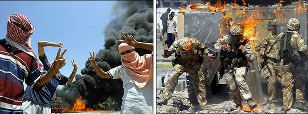 Irak polisinin, sivil giyimli iki İngiliz askerinin kendilerine ateş açtıkları gerekçesiyle tutuklandığını açıklamasından sonra, kızgın Basralılar molotof kokteylleri ve taşlarla bir İngiliz tankına böyle saldırmışlardı.