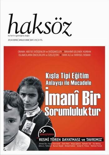 Haksöz Dergisi’nin 213. (Aralık 2008) sayısı çıktı. “Kışla Tipi Eğitim Anlayışı ile Mücadele İmanî Bir Sorumluluktur!” manşetiyle çıkan Haksöz’ün bu sayısında “Resmi Tören Dayatması ve Tavrımız” konulu bir soruşturmaya yer veriliyor.