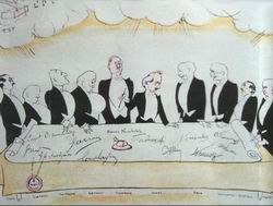Lozan'dan az bilinen bir sahne: 25 Temmuz 1923 günü bu defa Amerika ile masaya oturulmuş. Ayakta konuşan kişi, daha sonra Türkiye büyükelçiliğine atanacak olan Joseph C. Grew, İsmet Paşa ve Dr. Rıza Nur onu dikkatle dinliyorlar. Beau-Rivage Oteli'ndeki görüşmeler sonunda imzalanacak olan ticaret antlaşması Senato tarafından onaylanmayacaktır. ABD Lozan'ı onaylamadı denilir, halbuki onaylamadığı antlaşma asıl Lozan değil, bu ikili ticaret antlaşmasıdır.