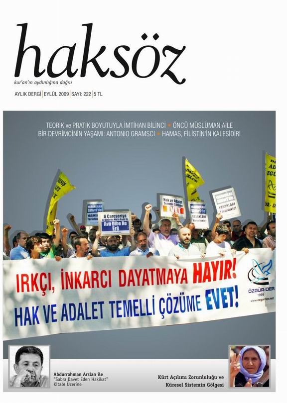 Şüphesiz bu çarpıklıkların ve zulümlerin ortadan kaldırılabilmesi güçlü bir kamuoyu desteğini gerektiriyor. Bunun için ise öncelikle halka, kitlelere bilinç kazandıracak çabaların yoğunlaştırılması, baskı ve saptırma çabalarına karşı ilkeli ve ısrarlı bir tutum takınılması şart. Haksöz elinden geldiğince, gücü yettiğince bu sorumluluğu yerine getirmek için çaba sarf eden bir yayın organı. Bu misyonu layıkıyla yerine getirme çabalarımızın okuyucularımızın desteğiyle, sahiplenmesiyle daha güçlü bir karşılık bulacağına inanıyor, Ekim sayımızda yeniden birlikte olmayı diliyoruz!