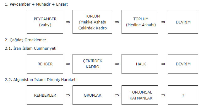 Rasullullah (s)'ın uyguladığı yöntemde, Medine ashabını çağdaş modelde "halk"la özdeşleştirmek tam gerçekçi olmamakla birlikte aykırı da değildir. O halde, İslami Hareket yöntemi; Rehber, rehberi ve ana mesaj kaynağını anlaşılır kılacak ve topluma taşıyarak tanıtıp toplumsallaştıracak bir çekirdek kadro ve rehberin denetiminde, çekirdek kadronun omzunda ve halkın yoğun destek ve katılımıyla gün yüzü görecek bir siyasi çizgide akmak zorundadır. Asr-ı Saadette ve çağdaş dünyada pratik bulan yöntemleri, mensubu bulunduğumuz topluma taşıyabilir miyiz acaba? Fiili gerçekliğimiz, yöntem sorununu ancak konuşmak zorunluluğuyla bizi yüz yüze getirmektedir. Acı gerçek şudur: Bu toprakların özel koşulları vardır ve söz konusu özel koşulların toplumsal tahlillerinden uzak bir çözüm, çözümsüzlük ve belki de intiharımızı olacaktır. Bu çözümsüzlüğün nedeni, İslamlaşmanın bir süreç sorunu olduğunun anlaşılmamasıdır. İslamlaşma, kelime-i şehadetle başlayan, tüm yaşamı kuşatan ve ölüme kadar devam eden bir süreçtir. O halde birey, kelime-i şehadetle çok zor bir yolculuğa başlamaktadır. Bu yolculuğun başarılı noktalanmasının adı insanlaşmadır. Müslümanlaşma "olmuşluk" değil "olmakta oluş"tur. O halde, insanlaşmak sürecinin sonu Müslümanlaşmaktır.